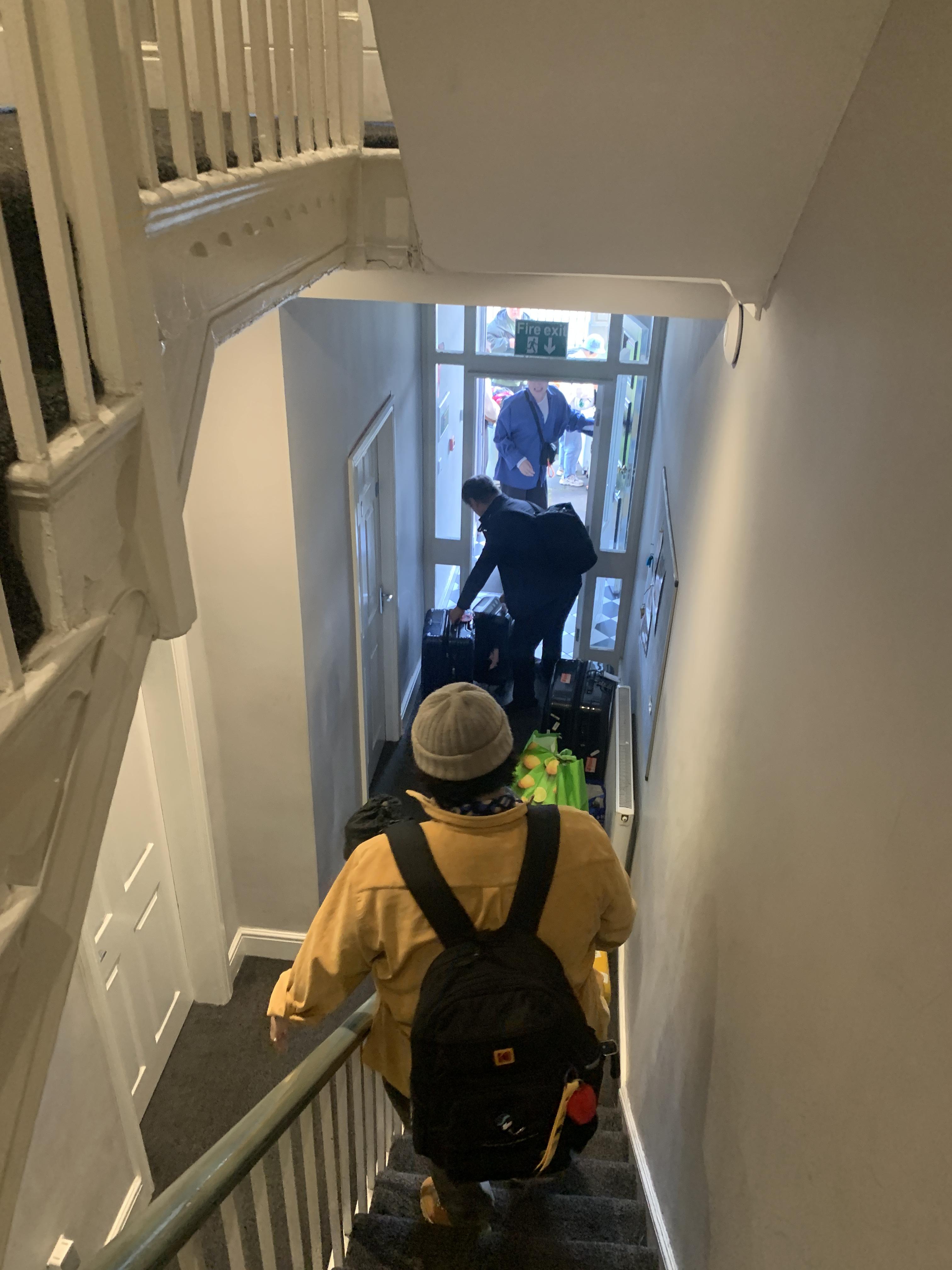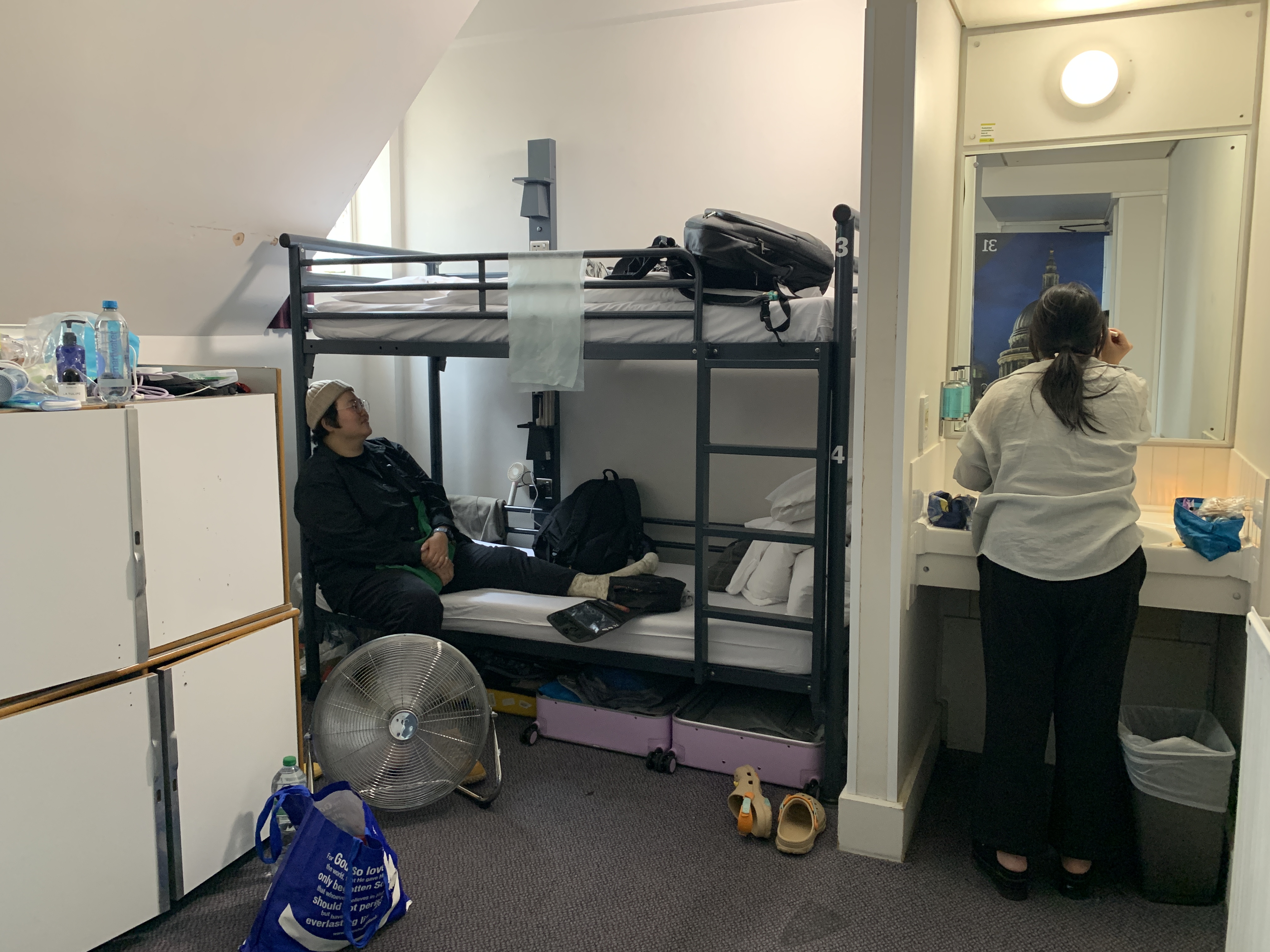 엘베 없는 고층 방 너무해… 맨체스터 숙소는 힘든 축에도 못 끼겠군. 더군다나 여기는 현관마다, 방마다 카드키를 찍고 들어가야 하는데 카드키도 방마다 2장밖에 주지 않아 여간 귀찮은 게 아니었다. 여자방은 2층침대로 가득한 두 객실. 화장실은 다행히 깨끗했지만 욕실이 난리였다. 1인 샤워실이었지만 남녀 구분이 없었고 누군가 쓰고 나온 머리카락, 세정제 찌꺼기가 가득이었다. 오 마이갓… 앞으로가 험난하겠군. 런던의 이미지가 이런 걸로 가려지는 건 원치 않는다.
